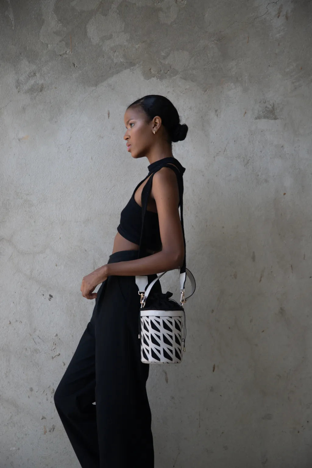 KU´KU Bucket es la combinación perfecta entre la tradición Arhuaca del tejido de lana de oveja virgen con el lujo y sofisticación como lo es el cuero cortado en laser con el diseño exclusivo demuestra marca combinado con herrajes bañados en oro.