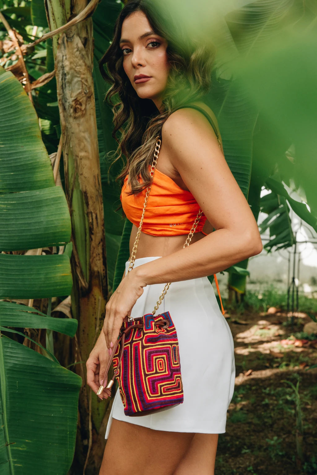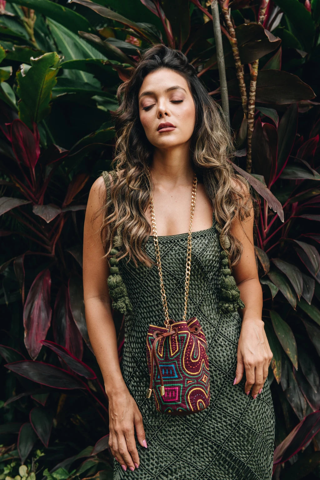 Elaboración 100% artesanal una obra de arte fabricada por manos de indígenas de la comunidad Gunadule en Colombia, en donde las mujeres con hilos agujas y trazos de manera delicada crean las molas; su tejido ancestral. Puedes encontrar algunos imperfectos ya que es completamente hecha a mano. Para dar vida a una pieza única e ideal para complementar nuestros outfits. Nuestra Kuna, es hecha en mola con cuero, su forro interno en gamuza. Cuenta con una asa en cadena.